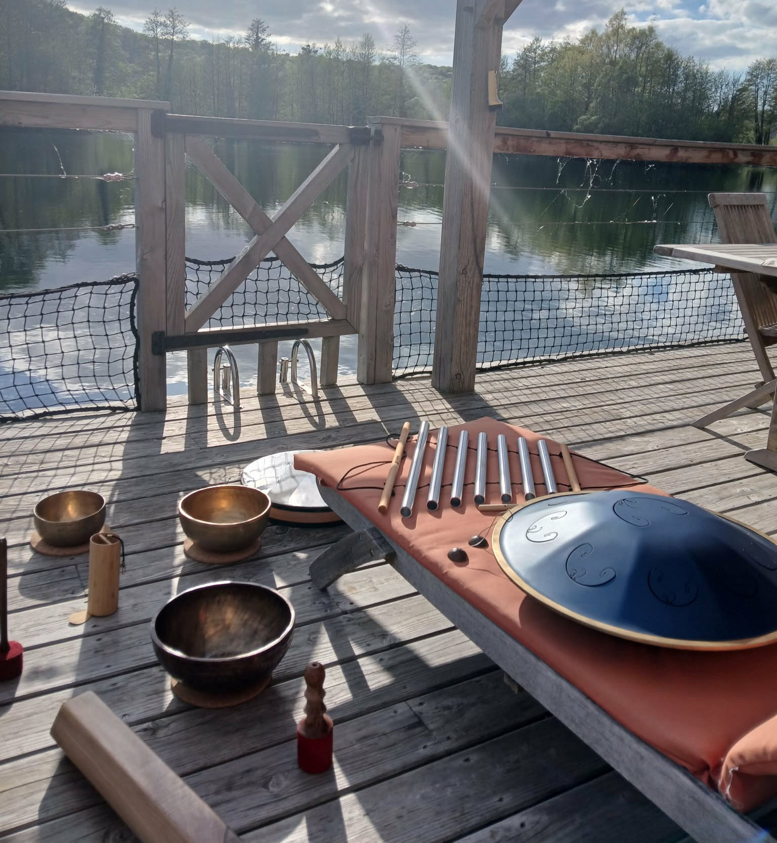 La relaxation sonore — aussi appelée bain de sons — utilise des instruments comme les bols chantants, gongs, carillons, handpan, etc. C’est une expérience à part pour vous laissez traverser par les vibrations des instruments et vous emmener vers un état de détente plus profond.